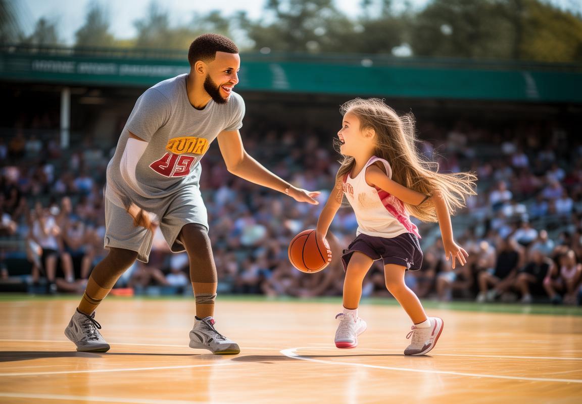 段二:妹妹在场上灵活地运球,库里不时地给予指导,他的动作温柔而耐心,每当妹妹做出一个漂亮的动作,库里总会露出满意的微笑。场边的观众也不禁被这一幕温馨的场景所吸引。
